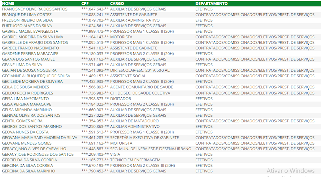 Veja a lista completa de todos os servidores do município, concursados e contratados!